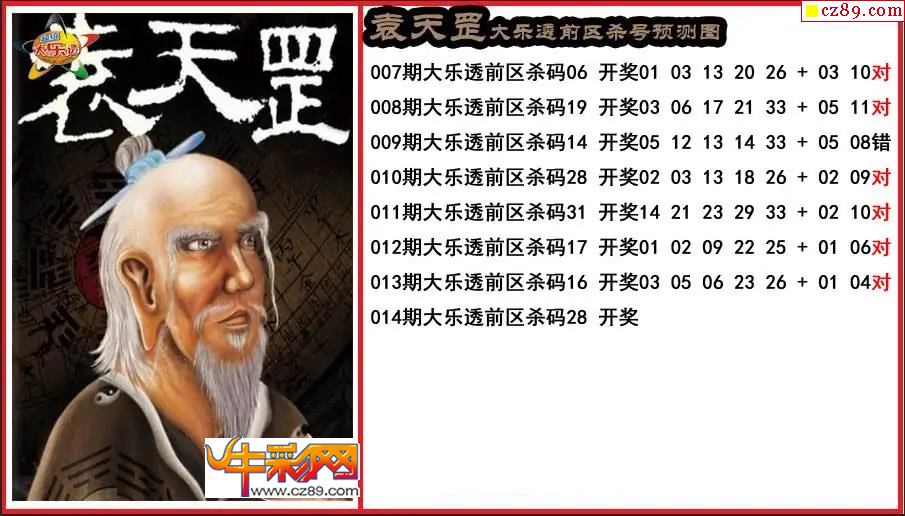 大乐透014期袁天罡前区杀号预测图
